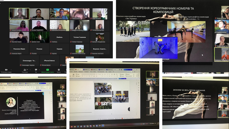 Так, під час складання екзамену з ОК «Мистецтво балетмейстера» (викладач – доцентка Олена Мартиненко) студенти 4 курсу денної та заочної форм навчання, окрім відповідей на тестові запитання, показ та захист частини постановки до хореографічного спектаклю, мали презентувати себе як балетмейстера на основі здобутих за період навчання компетентностей, аналізуючи постановки або творчі проєкти, створені як під час вивчення дисципліни, так і під час проходження практики, участі у виховних заходах, професійної діяльності поза навчанням тощо. Таке завдання допомогло майбутнім хореографам зрозуміти, яких навичок вони здобули під час навчання як балетмейстери, яких компетентностей їм не вистачає для роботи в сфері балетмейстерської творчості, чи мають вони особистий балетмейстерський почерк, яка творча робота була найкращою і чому та ін. І головне, як вони можуть надалі представити свій бренд у соціальних мережах для подальшого успішного працевлаштування, тобто створити паспорт хореографа, який надасть цінності в їх професійному житті.
