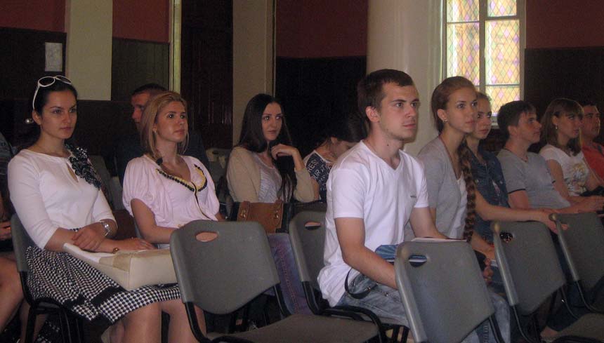 Провідний фахівець з виховної роботи БДПУ Анетта Омельченко та Студентська Рада (голова – Артем Воробйов), дослухавшись до пропозиції, організували сьогодні приміщення (головна актова зала), технічне обладнання (екран, проектор та ноутбук) та зацікавлену студентську аудиторію, щоби десяток молодих-енергійних представників КУ «ЗОЦМ» ЗОР мали можливість втілити заплановане. Дівчата провели тренінг « Чинники успішного працевлаштування», зустріч-презентацію та тренінг «Менеджмент молодіжних волонтерських програм» та інтелектуальну гру «Погляд молоді на Євопейський вибір України».