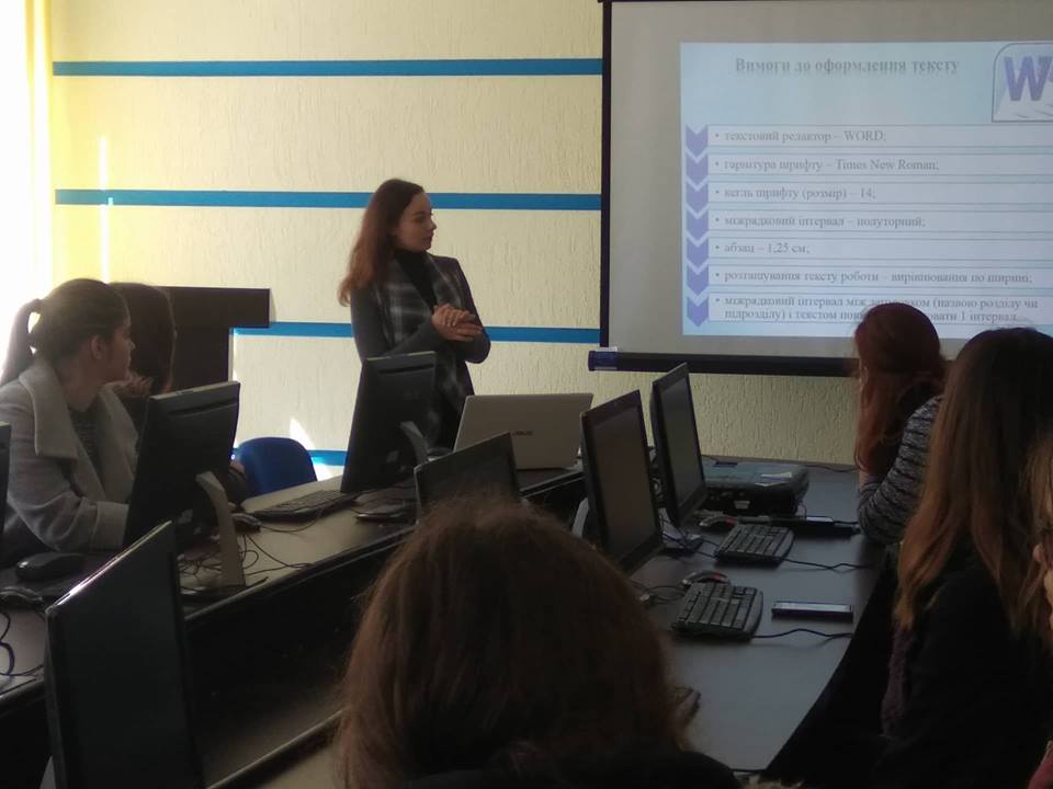 Зустріч відбулась з метою підвищення якості підготовки курсових робіт студентами денної форми навчання. Під час зустрічі актив студентів дізнався про основні структурні компоненти студентської наукової роботи, а також особливості її технічного оформлення.