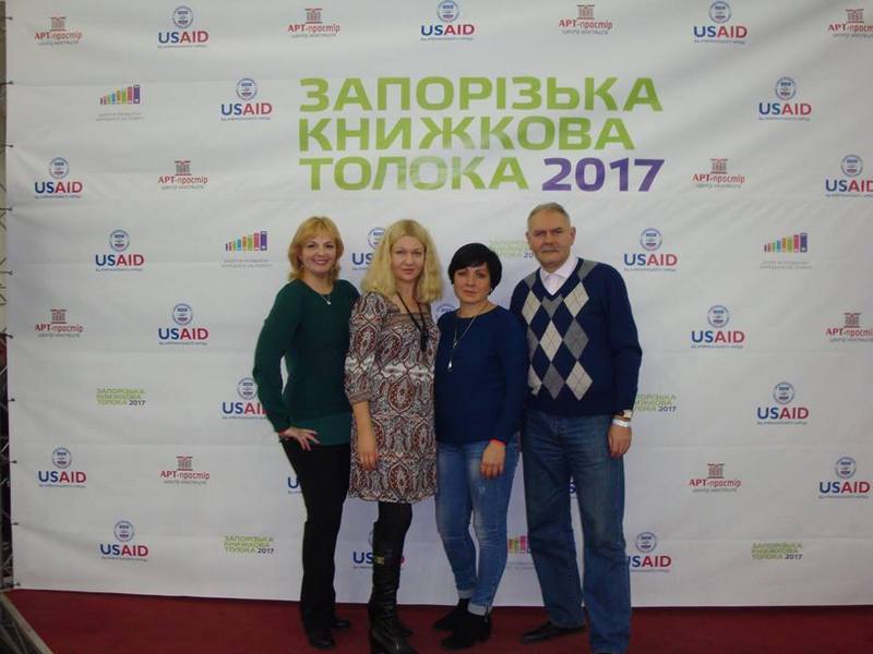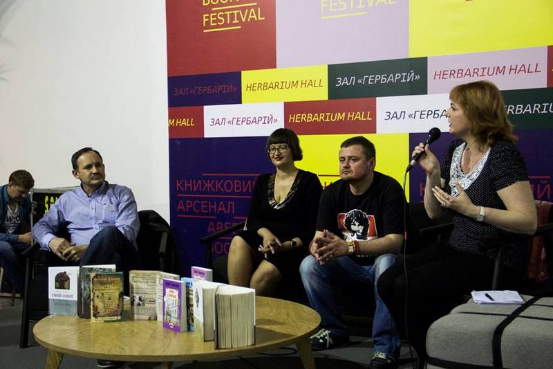 На світлинах: Софія Філоненко під час дискусії на Книжковому Арсеналі в Києві, травень 2017 року; учасники літературної дискусії про історичну прозу на Запорізькій книжковій толоці в жовтня 2017 року