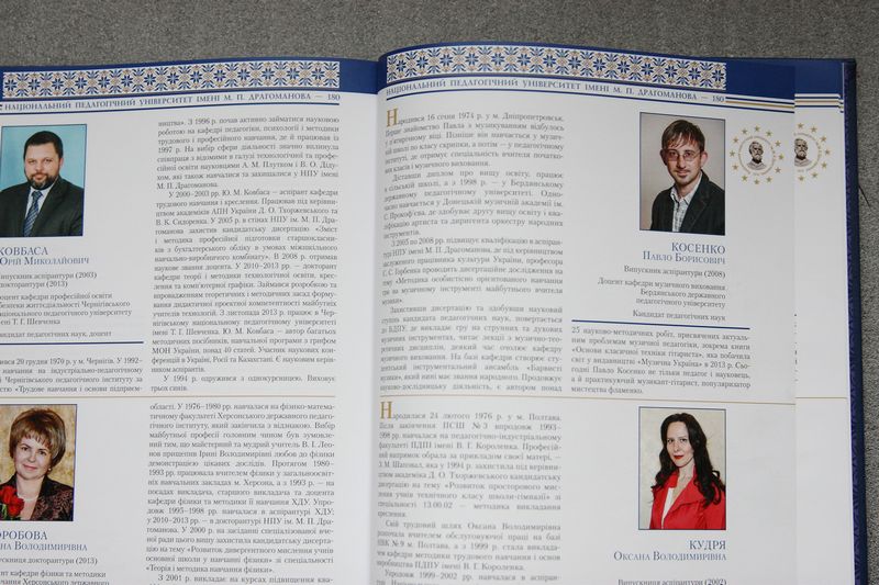 На сторінках цього ювілейного видання поруч із відомими українськими корифеями Іваном Драчем, Анатолієм Авдієвським, Миколою Жулинським та десятками інших є фото і коротка розповідь про нашого, університетського Павла Косенка – випускника аспірантури НПУ імені М.П.Драгоманова (2008), доцента кафедри музичного виховання БДПУ, кандидата педагогічних наук.