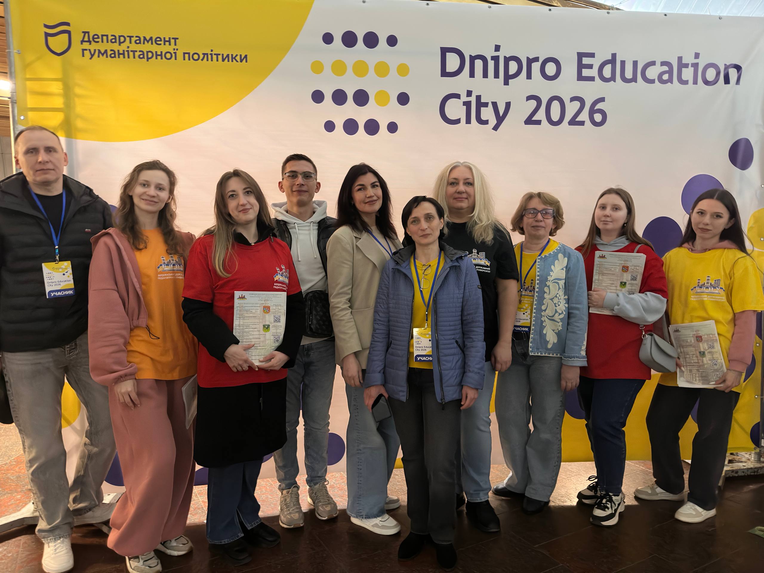 Бердянський державний педагогічний університет висловлює щиру вдячність організаторам фестивалю Dnipro Education City 2026 за високий рівень підготовки заходу, створення безпечного й ефективного простору для спілкування молоді з представниками закладів освіти та підтримку профорієнтаційних ініціатив.