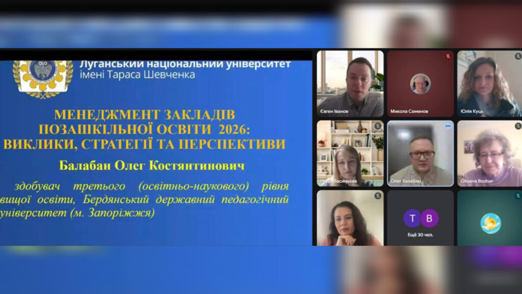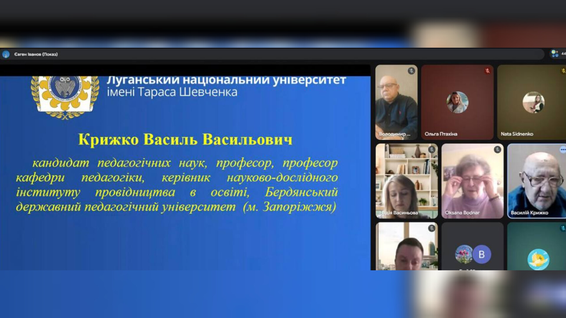 Василь Крижко виступив з доповіддю «Сингулярні підходи проф. Є. Хрикова в управлінні закладами освіти». Здобувач О. Балабан проголосив цікаву тему «Основні напрямки функціонування закладів позашкільної освіти в умовах релокації».