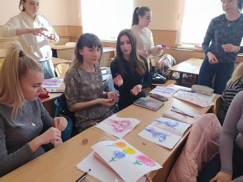 На лекції студенти 2 курсу денної форми навчання ознайомлювалися із різноманітними нетрадиційними методиками та техніками з розвитку дрібної моторики дітей з особливими потребами, а також із цікавістю та завзятістю практикувалися в їх застосуванні.
