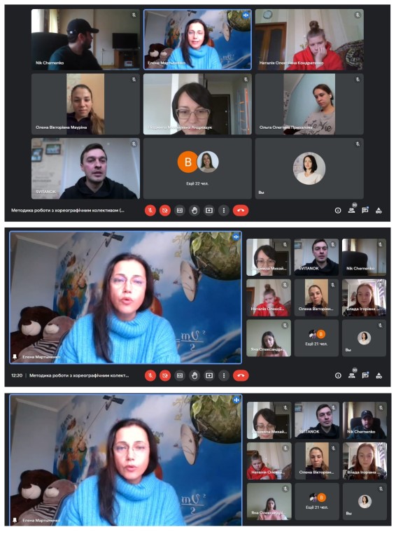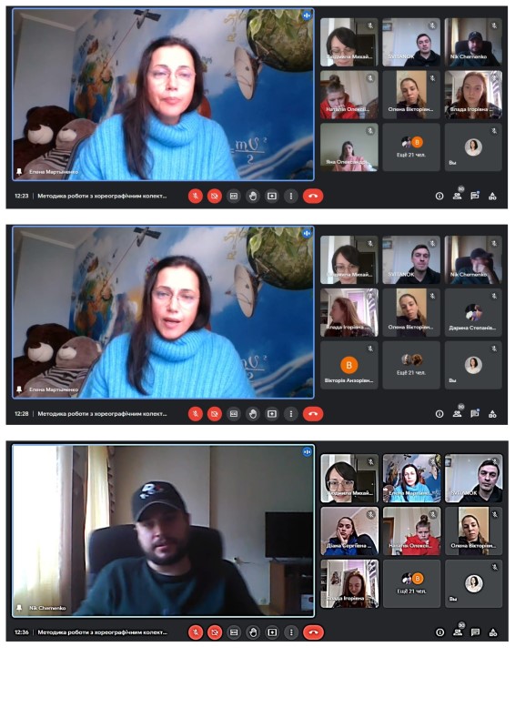 Розкриття секретів професійної діяльності, особливостей керівництва колективами державної та комерційної форм власності, акцентування уваги на складності навчання хореографії в умовах карантину і перегляду форм та методів роботи задля збереження аматорського хореографічного осередку робили дискусію жвавою та цікавою. Досвід від спілкування отримали всі, як студенти, так і досвідчені керівники колективів.