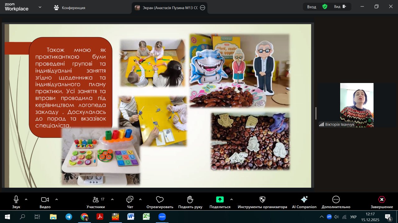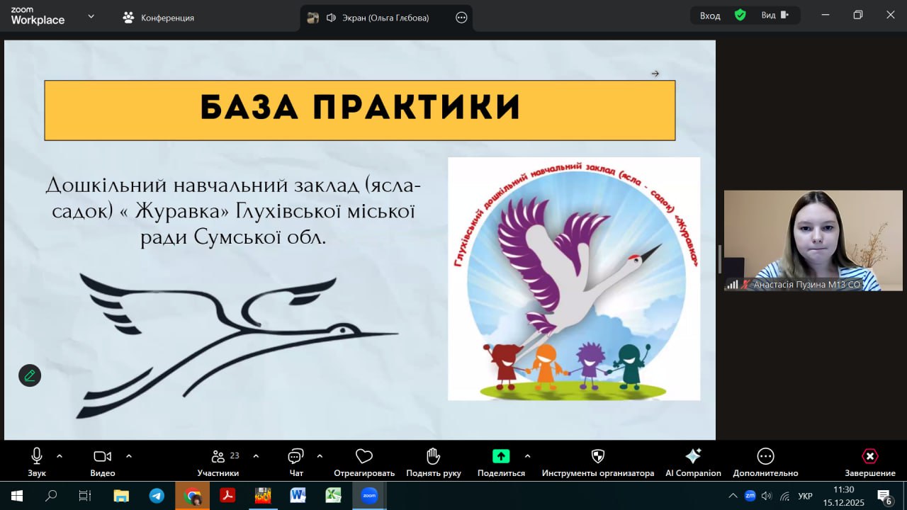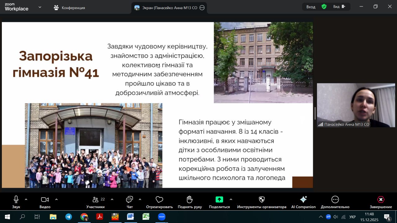 На факультеті дошкільної, спеціальної та соціальної освіти, 15.12.2025 року, відбулася звітна онлайн-конференція за результатами проходження діагностико-аналітичної (виробничої) практики магістрантів спеціальності 016 «Спеціальна освіта». Захід став логічним завершенням кількатижневої роботи здобувачів у закладах загальної та спеціальної освіти, інклюзивно-ресурсних центрах і реабілітаційних установах.