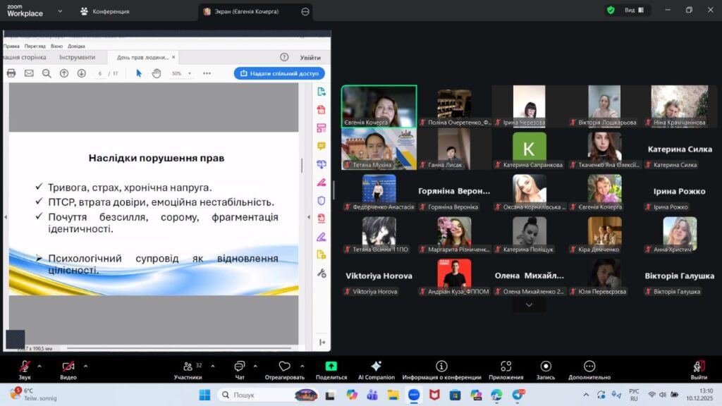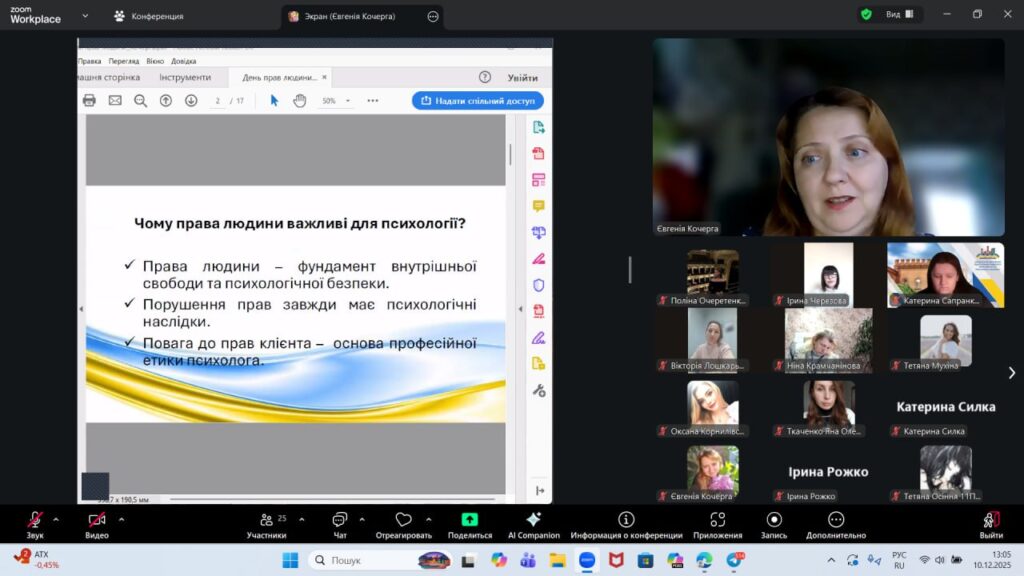 Захід був спрямований на поглиблення розуміння ролі прав людини у формуванні психологічної безпеки, особистісної автономії та етичної позиції майбутніх фахівців.