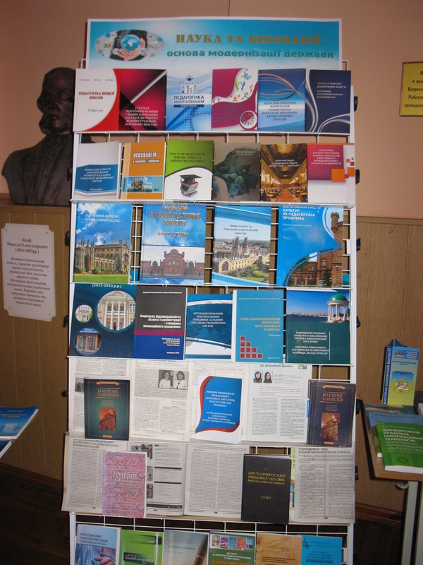 Із нагоди університетських Днів Науки бібліотекарі БДПУ підготували презентацію «Наука та інновації – основа модернізації держави», присвячену творчому доробку педагогічного колективу університету. Презентація складалась із книжкових виставок та демонстрації слайдів наукових видань 2015-2017 рр.