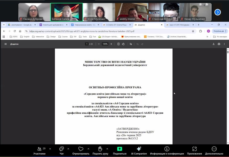 У ході зустрічі було проведено анкетування здобувачів вищої освіти щодо рівня їхньої задоволеності освітніми програмами. Студенти мали змогу висловити власні думки, поділитися досвідом навчання та надати пропозиції щодо вдосконалення змісту програм, методів викладання й організації освітнього процесу.