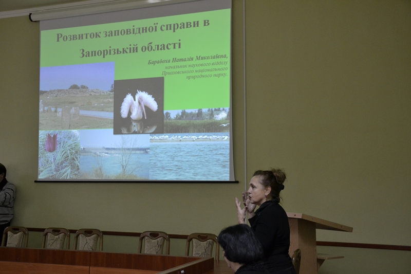 Сьогодні, 24 листопада,  у конференц-залі БДПУ пройшла цікава зустріч зацікавлених викладачів, студентів університету та співробітників краєзнавчого музею м. Бердянська з представниками національного природного парку (НПП) "Приазовський", який є третім за величиною в Україні. Тема зустрічі – "Природно-заповідний фонд Запорізької області: минуле, сьогодення, майбутнє". Лекцію проводила начальник наукового відділу НПП Наталія Барабоха.