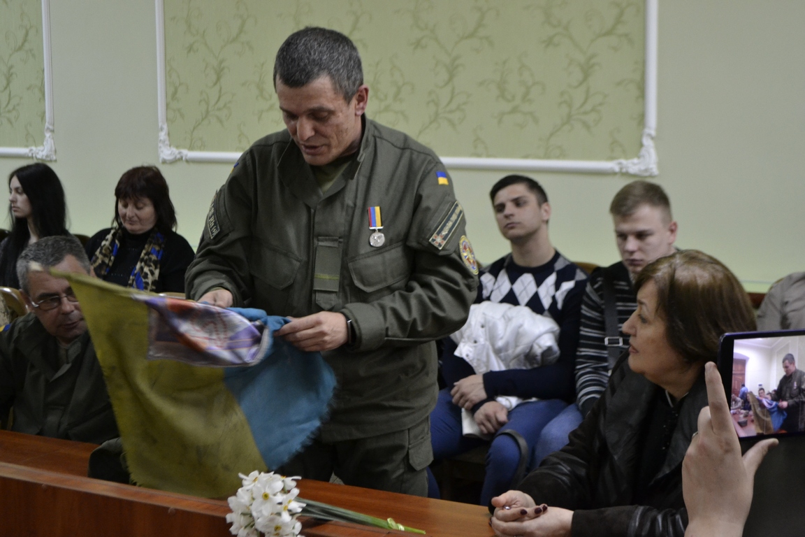У знак вдячності солдати привезли й вручили подарунок – фронтовий прапор України, який оберігав їх протягом усієї служби, урочисто передавши його професору Ігорю Лиману – для університетського музею. В свою чергу, «нашоатлантівець» Степан Герилів вручив гостям свою книгу «НАШІ АТЛАНТИ: жертовність во ім`я спасіння» з автографом, пообіцявши, що в наступному томі буде розповідь й про них…