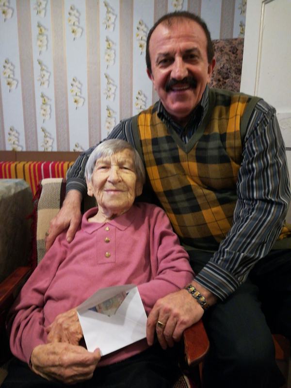 Університетські благодійники вирішили перший день Нового року увінчати доброю справою. Степан Герилів – від Благодійної Скрині БДПУ "ДоброДій" та добрих далеких, але таких близьких по духу американських друзів – парафіян церкви св. Івана Хрестителя з американського міста Нюарку, а голова профкому БДПУ Віталій Лола – як депутат Бердянської міської ради та жіночки з громадських організацій тепло привітали із славним 95-літтям жительку Бердянська Ганну Назарівну Бушлю.