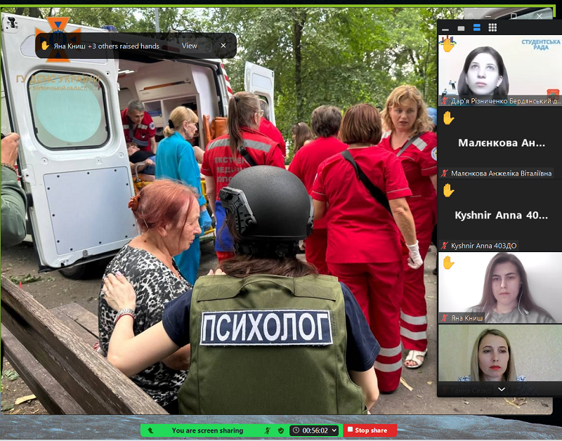 Ілля Васильович розглянув важливі аспекти психологічного забезпечення під час надзвичайних ситуацій. Він висвітлив не лише теоретичні основи, але й практичний досвід роботи в цій сфері. Його знання та досвід були безцінними для здобувачів, оскільки вони мали змогу відчути реальність ситуацій, з якими сьогодні, нажаль, стикаються українці. Зокрема, він наголосив на важливості сприяння психологічній адаптації учасників надзвичайних ситуацій, розвитку їх стресостійких здібностей та встановленні психологічної підтримки. Така зустріч стала не лише можливістю для здобувачів отримати поглиблені знання з психологічного забезпечення надзвичайних ситуацій, але й стимулом для подальшого вивчення та розвитку в цій сфері. Співпраця між освітою та практикою виявляється ключовою для покращення підготовки фахівців, які будуть готові ефективно реагувати на будь-які виклики, що ставлять перед суспільством надзвичайні ситуації.