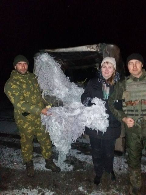 Фінансова допомога Тетяни Татаренкової, Людмили Борисової, Ірини Шиманович, Світлани Степаненко, Тетяни Шилової, Олександра Брехова, Андрія Редька, Ольги Харлан, Людмили Афанасенкової, Тетяни Подумей, 300 грн. від людей з окупованої території, Тетяни Зінченко, Ольги Мякоткіної з Мальти, Ірини Нагай дозволила нам придбати ліки (2477 грн.), суху рибу (бички, тарань) – 840 грн., чай, каву, вологі серветки, одноразовий посуд, свічки, паливо для машини та інші речі, які замовляли хлопці тощо. Дякую нашим дівчатам за маскувальні сітки…».