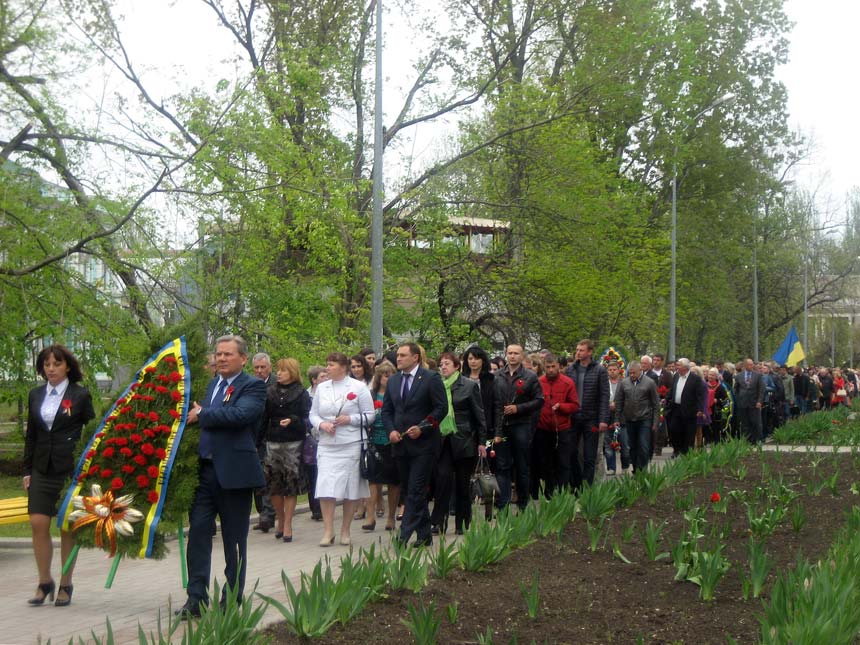 У скорботних колонах йшли керівники та представники виконавчої влади міста, депутатського корпусу, ветеранських організацій, трудових колективів, громадськості, молодь… Біля пам`ятника – почесний караул, а ходу колон супроводжували мелодії естрадно-духового оркестру…