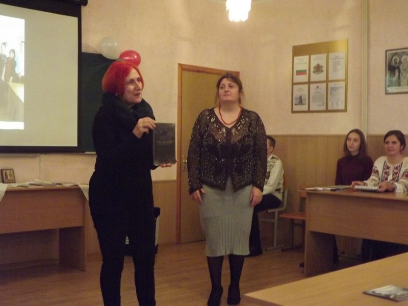 Лектор болгарської мови МДПУ ім. Б. Хмельницького Красимира Колева з болгарського міста Шумен  привітала нас з річницею і розповіла про те, що Центр болгаристики та лекторат болгарської мови, який діє при Мелітопольському державному педагогічному університеті ім. Б. Хмельницького 8 грудня 2016 року на базі Центральної міської бібліотеки ім. М. Лермонтова до 1100-річчя пам'яті святого Климента Охридського провів перші студентські болгаристичні читання. На конференції були студенти філологічних факультетів із Мелітополя, Запоріжжя, Бердянська. Вони зачитали свої наукові роботи, темою яких були пам’ятки старослов’янської писемності. Пані Колева нагородила дипломом за 1-е місце студентку 2 курсу ФФСК БДПУ Марину Фірсову. Для центру вона подарувала диск «Це Болгарія».