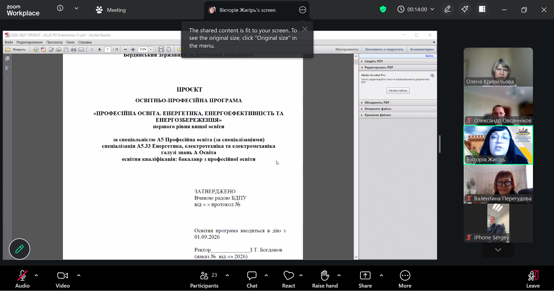 Відкрила зустріч декан факультету фізико-математичної, комп’ютерної та технологічної освіти, доктор педагогічних наук, професор Вікторія Жигірь, яка наголосила на важливості засідання для удосконалення освітньо-професійних програм та оптимізації освітнього процесу з підготовки майбутніх педагогів професійної школи.