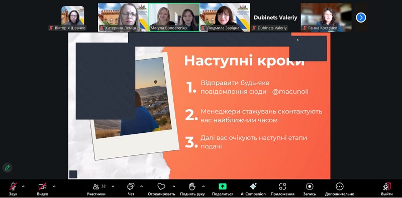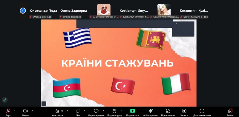 Особливу увагу було приділено програмам міжнародного стажування, які відкривають для студентської молоді можливості професійного зростання, набуття практичного досвіду в міжнародному середовищі та розвитку навичок міжкультурної комунікації. Учасники зустрічі дізналися про країни, у яких можна проходити стажування, особливості реалізації програм, а також про основні етапи подання заявки та проходження відбіркових процедур.