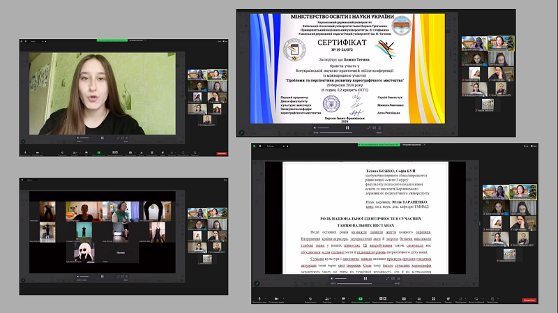 Для більш об’єктивного оцінювання практичної підготовки майбутніх керівників хореографічних колективів на звітну конференцію були запрошені педагоги ансамблю «МарЛен» Юлія Тараненко та Наталя Кривунь.  Основний акцент було зроблено на рефлексію, тобто самооцінювання студентом результатів проходження практики. З цією метою в змісті програми практики була розроблена рейтингова таблиця, за якою здобувачі вищої освіти могли оцінити свою діяльність і, крім того, закцентувати увагу на оволодінні ними загальними та фаховими компетентностями, які прописані в змісті ОПП «Хореографія», за якою вони навчаються. У зміст практики було включено не лише проведення хореографічних занять та створення творчого проєкту, а й наукову складову (написання наукових тез, виступ на науковій конференції), що допомогло комплексно оцінити студентам рівень своєї фахової підготовки і готовність працювати на посаді керівника хореографічного колективу. Публічність, академічна доброчесність, доброзичливість, можливість відкрито спілкуватися з викладачами стали ще однією сходинкою на шляху до професійної майстерності.