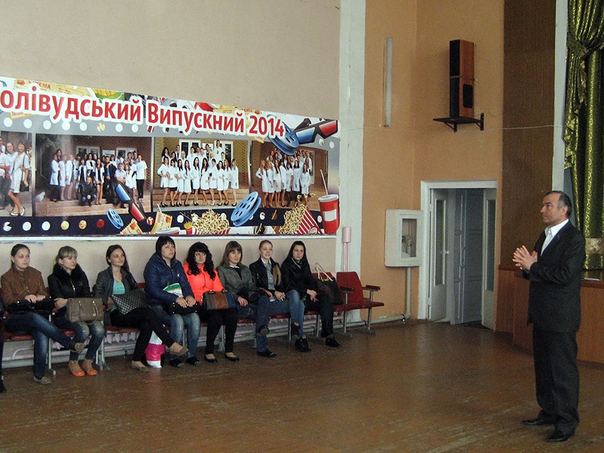 А якщо точніше, то до актової зали на зустріч із випускниками завітали й виступили голова комітету профспілки Віталій Лола, заступник декана факультету фізичного виховання Людмила Коновальська, колишній випускник коледжу, а нині завідувач кафедри основ здоров`я та фізичної реабілітації, доцент, кандидат наук з фізичного виховання Віталій Осіпов. Гості ґрунтовно розповідали учням про всі пріоритети навчального та виховного процесу саме в БДПУ, відповіли на всі питання, що зацікавили майбутніх наших абітурієнтів.