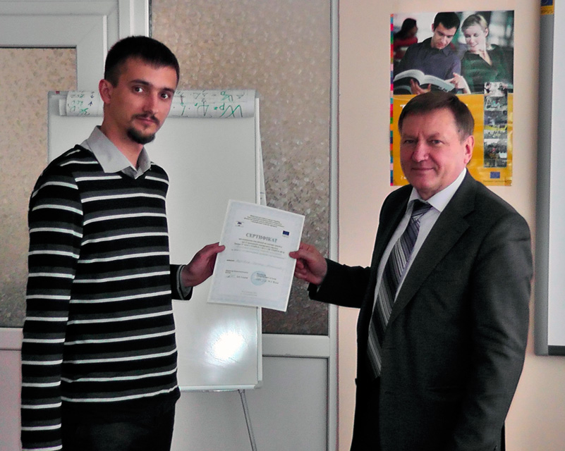 На завершення ІТ-менеджер Сергій Михальчік разом з начальником інформаційно-комп’ютерного центру Сергієм Слободянюком провели воркшоп з теми: «Організація керування багаторівневою комп’ютерною мережею університету». Проректор з міжнародних зв’язків Микола Йохна вручив учасникам семінару-тренінгу сертифікати про підвищення кваліфікації, провів екскурсію до музею університету та побажав успіхів у роботі над виконанням проекту.