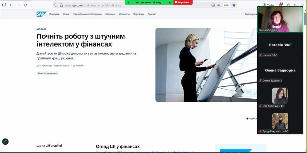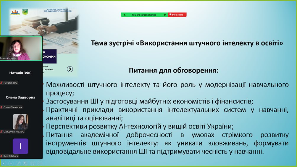 Штучний інтелект в освіті: обговорення сучасних викликів і можливостей на засіданні гуртка «Сучасні проблеми економіки та фінансів»