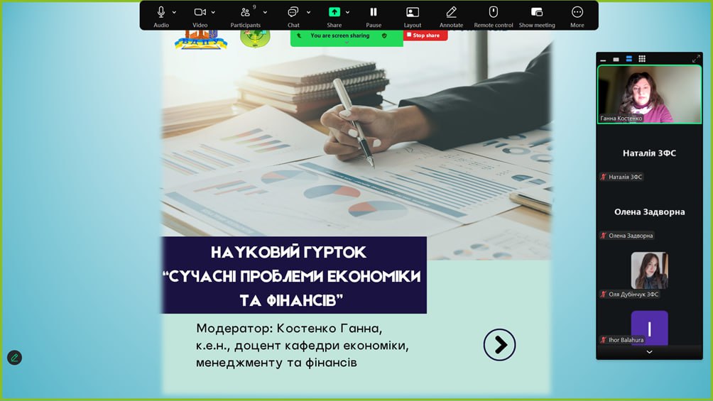 Зустріч гуртка стала важливою платформою для обговорення одного з ключових викликів та можливостей сучасної освіти. Здобувачі освітньо-професійних програм «Фінанси, банківська справа та страхування» та «Економіка бізнесу» отримали нові знання, корисні рекомендації та розуміння того, як штучний інтелект може змінити їхню професійну підготовку.