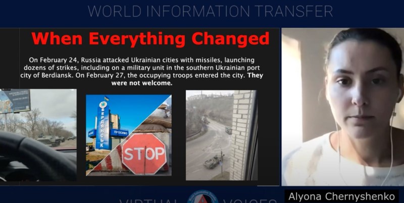 Цьогорічна випускниця Альона Чернишенко народилася і жила в Бердянську, через тимчасову окупацію міста переїхала до Львова. Вона активно студіює різні мови, цікавиться міжнародними культурами, як молодий науковець досліджує питання літературного образу інших народів і країн і продовжує вивчати досвід науковців. Плідна робота в онлайн-навчальних програмах наставництва заклала основу для її відданості правам людини та мовному різноманіттю.