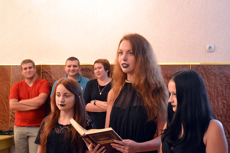 Кафедра соціальних комунікацій має свою традицію. Уже четвертий рік поспіль викладачі та студенти стають свідками посвячення у професію студентів-першокурсників (див. світлини).