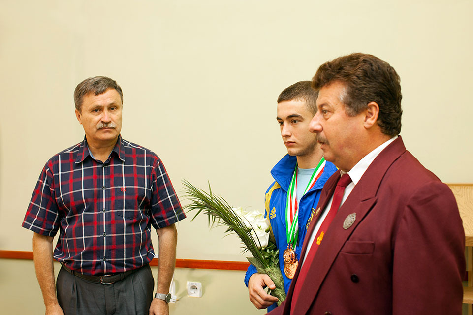 Учора, 16-го вересня, в конференц-залі університету молодого спортсмена Владислава Чорного та його тренера Леоніда Котенджи вітали з перемогою перший проректор БДПУ Володимир Федорик, декан ФКЕТ, професор Віталій Хоменко, учасники традиційної вівторкової наради (див. фото).