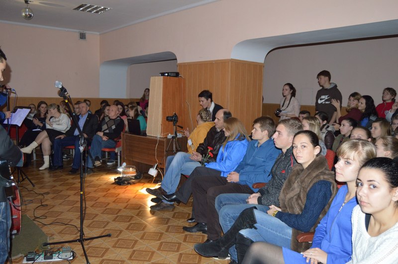 Я так само не уявляв концерту без відеоряду, і відразу постало питання про проектор. На допомогу мені прийшов Едуард Чубар, який після став оператором на концерті, і Анна Міщенко, яка також чудово виконала кілька пісень. Оскільки наше століття – це століття соціальних мереж, я запропонував зробити рекламу в ВК. Павло Мельник створив сторінку зустрічі, на яку я виклав промо ролик, а також чудовий постер, який зробив сам Павло. Роль ведучого ми довірили культ організатору гуртожитку Аріні Захаровій.