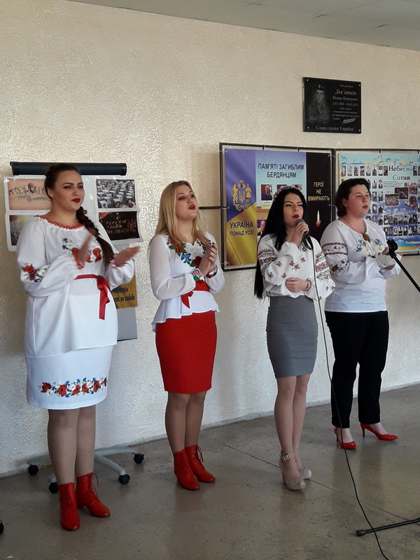 Учора, 20 лютого,  в державному навчальному закладі «Бердянський машинобудівний професійний ліцей» відбулась лінійка-реквієм, присвячена пам’яті Героїв Небесної Сотні, учасниками якої були й студенти кафедри теорії і методики навчання мистецьких дисциплін БДПУ Дар’я Ілікчиєва, Аліна Макаренко, Анастасія Крикова та Катерина Кирилюк. Талановиті дівчата заворожували залу піснями «Повертайся живим», «Мальви», «Україна – це ми», «Заспіваймо пісню за Україну». Чуттєві тексти вокальних творів та висока професійна майстерність наших студентів викликали у присутніх сльози на очах, мимоволі змусивши глядачів згадати тих, хто ціною власного життя боровся за наше спільне майбутнє.