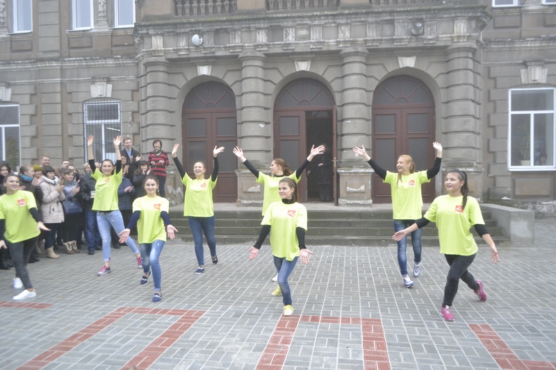 Першими тротуарне покриття «випробували» дівчата-танцівниці факультету дошкільної, соціальної та спеціальної освіти БДПУ.