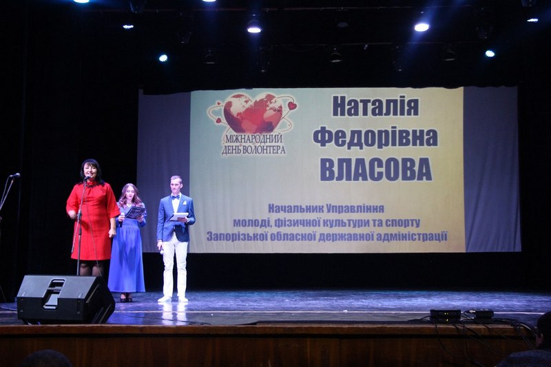 До всіх присутніх зі словами привітання та подяки від імені голови Запорізької обласної державної адміністрації Костянтина Бриля та Обласної державної адміністрації виступила Наталія Власова – начальник Управління молоді, фізичної культури та спорту ЗОДА. Вона привітала волонтерів з Міжнародним святом, побажала всім продовжувати свою волонтерську діяльність та надалі займати громадську активну позицію, зауважила на важливості волонтерської діяльності на шляху до розбудови Запорізького краю та нашої держави.