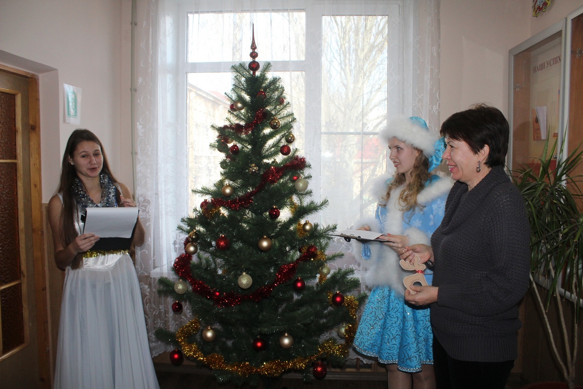 У той час, коли студенти й викладачі виготовляли подарунки для дітей, до аудиторії завітала Снігуронька та запросила всіх на відкриття ялинки інституту, біля якої відбувся маленький концерт. Снігуронька та Сніжинка побажали всім добра в новому році та провели конкурси, а право повісити першу іграшку надали директорові Інституту філології та соціальних комунікацій БДПУ Аллі Сердюк.