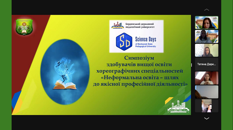 На симпозіумі розглядали один із шляхів до якісної професійної діяльності – неформальну освіту. Здобувачі вищої освіти спеціальностей 024 Хореографія та 014 Середня освіта (Хореографія) за своїми академічними групами підготували доповіді, які висвітлювали їх активну діяльність у наукових конференціях, семінарах-практикумах, майстер-класах, тренінгах, олімпіадах, конкурсах тощо. У кінці кожного виступу як висновок студенти мали підготувати відповідь на питання: «Яке місце в моєму професійному становленні займає неформальна освіта?». Доповіді були цікаві, змістовні, обґрунтовані, продемонстровано багато світлин із різних заходів. Необхідно відмітити оригінальну та змістовно наповнену презентацію групи 14Х, це першокурсники, які тільки стали на сходинки освіти, а вже мають високі результати в неформальній освіті.