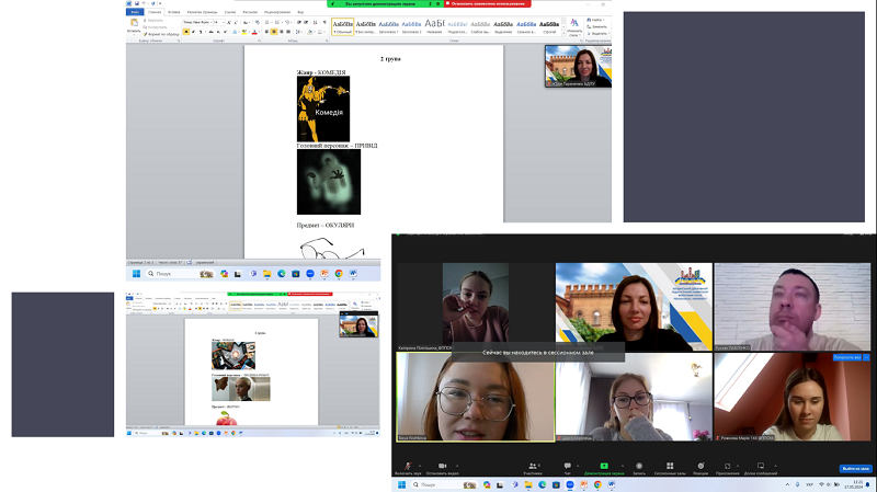 Креативною та цікавою виявилася друга частина зустрічі викладачів зі студентами-хореографами – проведення гри від наукового гуртка «Традиційні та інноваційні методи розвитку творчості в сучасному танці» (керівниця – Юлія Тараненко). The online game «The Ballet Master’s Project» розроблена гуртківцями, апробована під час виробничої практики в народному ансамблі естрадного танцю «МарЛен» (керівниця – заслужена працівниця культури Олена Мартиненко) Центру дитячої та юнацької творчості ім. Є.Руднєвої), була проведена з метою формування та розвитку навичок постановчої роботи, проєктної діяльності, креативності, уяви та фантазії, уміння працювати в команді, прагнення до самовдосконалення. Усіх учасників було розподілено на дві команди, кожна з яких кидала кубики, тим самим обираючи жанр постановки, головний персонаж, предмет, місце події та вид хореографії. Необхідно було придумати назву творчого продукту, лібрето та розробити композиційний план. Спочатку відбувалася діяльність по групам у сесійних залах, а потім презентація творчого проєкту. Завдання було не з легких, адже студенти мали в постановці поєднати непоєднуване. Але вкотре хореографи підтвердили свою дружність і згуртованість, гнучкість рішень та нестандартне мислення.