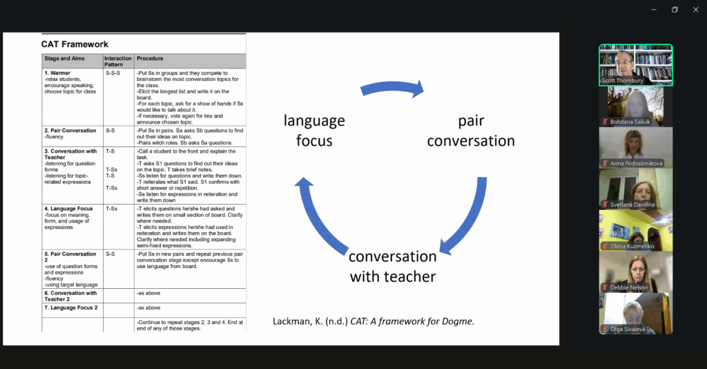 6 жовтня здобувачі вищої освіти, які навчаються за освітньо-професійними програмами бакалаврського рівня «Філологія (германські мови та літератури (переклад включно), перша – англійська, друга – німецька)» та «Середня освіта (англійська мова та література)», а також магістерської програми «Середня освіта (мова і література (англійська))», взяли участь у відкритій онлайн-лекції Скотта Торнбері – всесвітньо відомого автора книжок із методики навчання англійської мови, викладача, методиста і тренера з понад 30-річним досвідом.