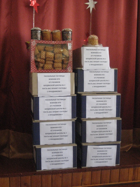 У БСШ №16 (директор – Наталя Кондратюк) під час ярмарку-продажу «Великодній кошик – воїнам АТО» зворушливі діти вручили для солдат десятки коробок із пасками, писаками, солодощами, листами-посланнями захисникам зі словами теплих побажань мирних, веселих Великодніх свят…