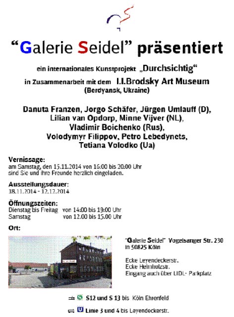 Старший викладач кафедри початкової освіти Інституту психолого-педагогічної освіти та мистецтв БДПУ, член Національної Спілки художників України Тетяна Володько взяла участь у Міжнародному арт-проекті «Прозорість», який проходив з 15 листопада по 12 грудня 2014 року у галереї «Зайдель» (Німеччина , Кельн). Учасники проекту – художники Німеччини, Нідерландів, України.