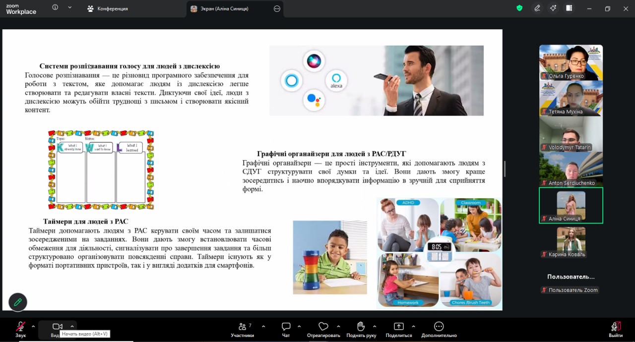 Другий блок був присвячений асистивним технологіям, що застосовуються для підтримки осіб з різними потребами. Це дозволило сформувати цілісне уявлення про роль сучасних технологій у створенні доступного та інклюзивного освітнього середовища.