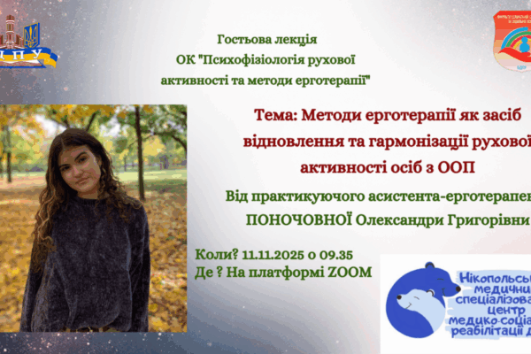 Гостьова лекція з ОК «Психофізіологія рухової активності та методи ерготерапії»…