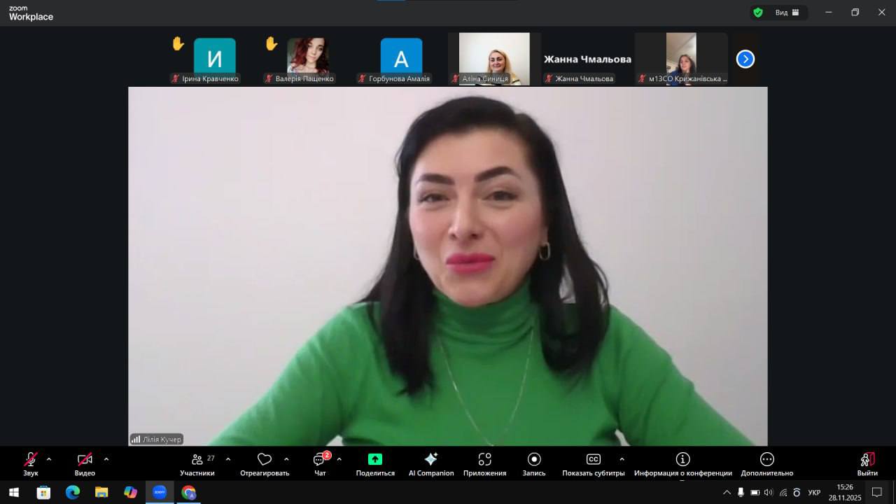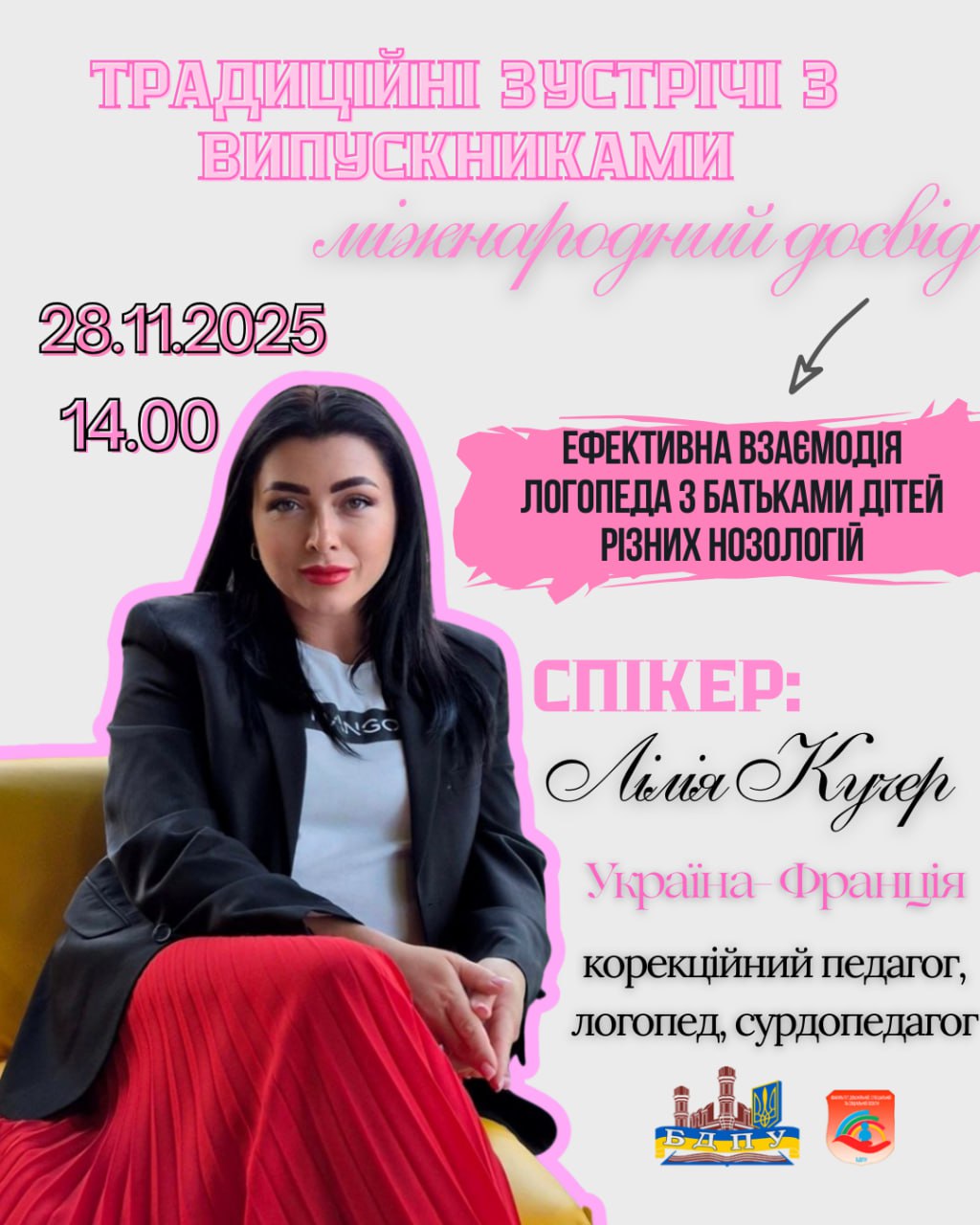 Вже за традицією цієї осені, а саме 28 листопада 2025 року здобувачі вищої освіти першого (бакалаврського) та другого (магістерського) рівня вищої освіти спеціальності 016 Спеціальна освіта, мали змогу зустрітись з випускницею Бердянського державного педагогічного університету за напрямом підготовки А6 Спеціальна освіта Лілією Кучер логопедом, корекційним педагогом, сурдопедагогом, яка наразі знаходиться у Франції.
