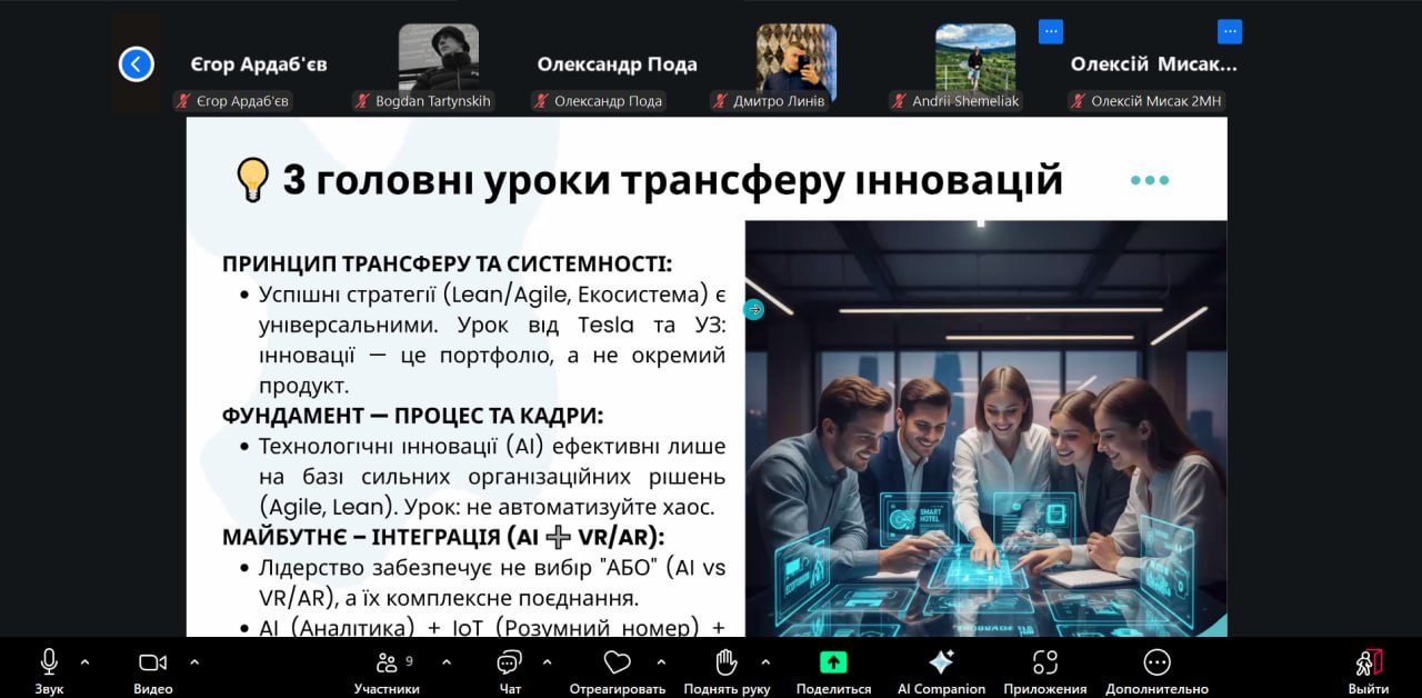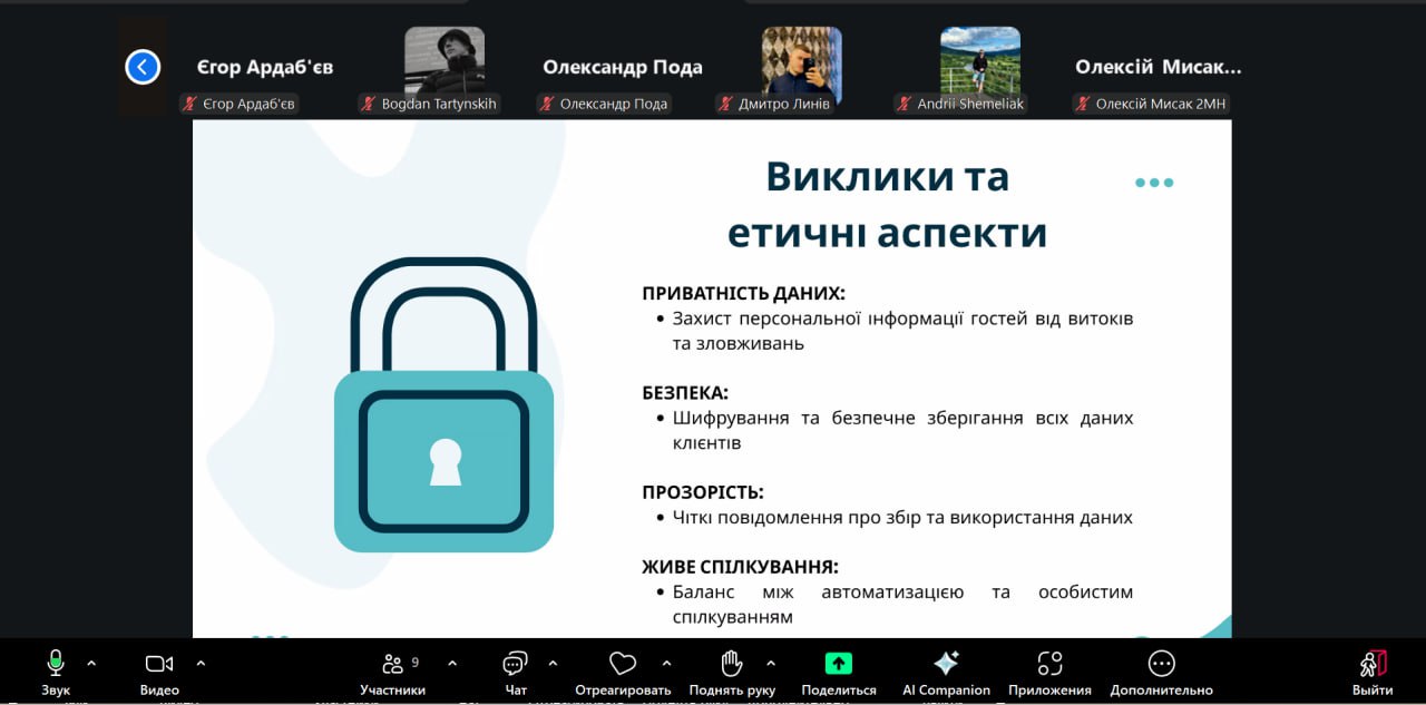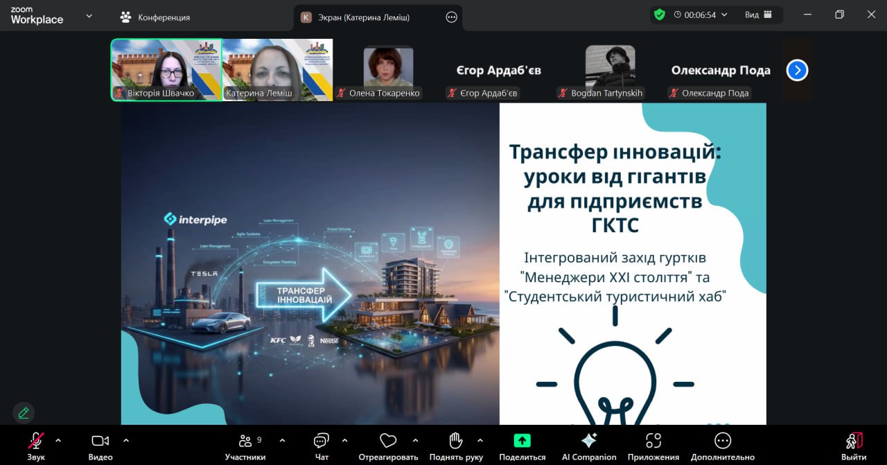 Центральною темою зустрічі став трансфер інноваційних рішень з інших галузей економіки у сферу гостинності та туризму. У межах обговорення студенти досліджували можливості адаптації управлінських, технологічних і маркетингових інновацій, запозичених із практики провідних світових та національних компаній, до специфіки діяльності підприємств ГКТС.