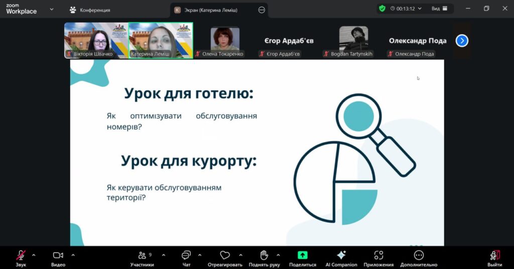Кафедра економіки, менеджменту та фінансів провела інтегрований онлайн-захід науково-практичних гуртків «Менеджери XXI століття» та «Студентський туристичний хаб» за участю студентів освітньо-професійних програм «Менеджмент», «Менеджмент готельного, курортного та туристичного сервісу», «Менеджмент організацій», спрямований на формування у здобувачів освіти системного бачення інноваційного розвитку підприємств готельно-курортного та туристичного сервісу на основі аналізу кращих світових практик.