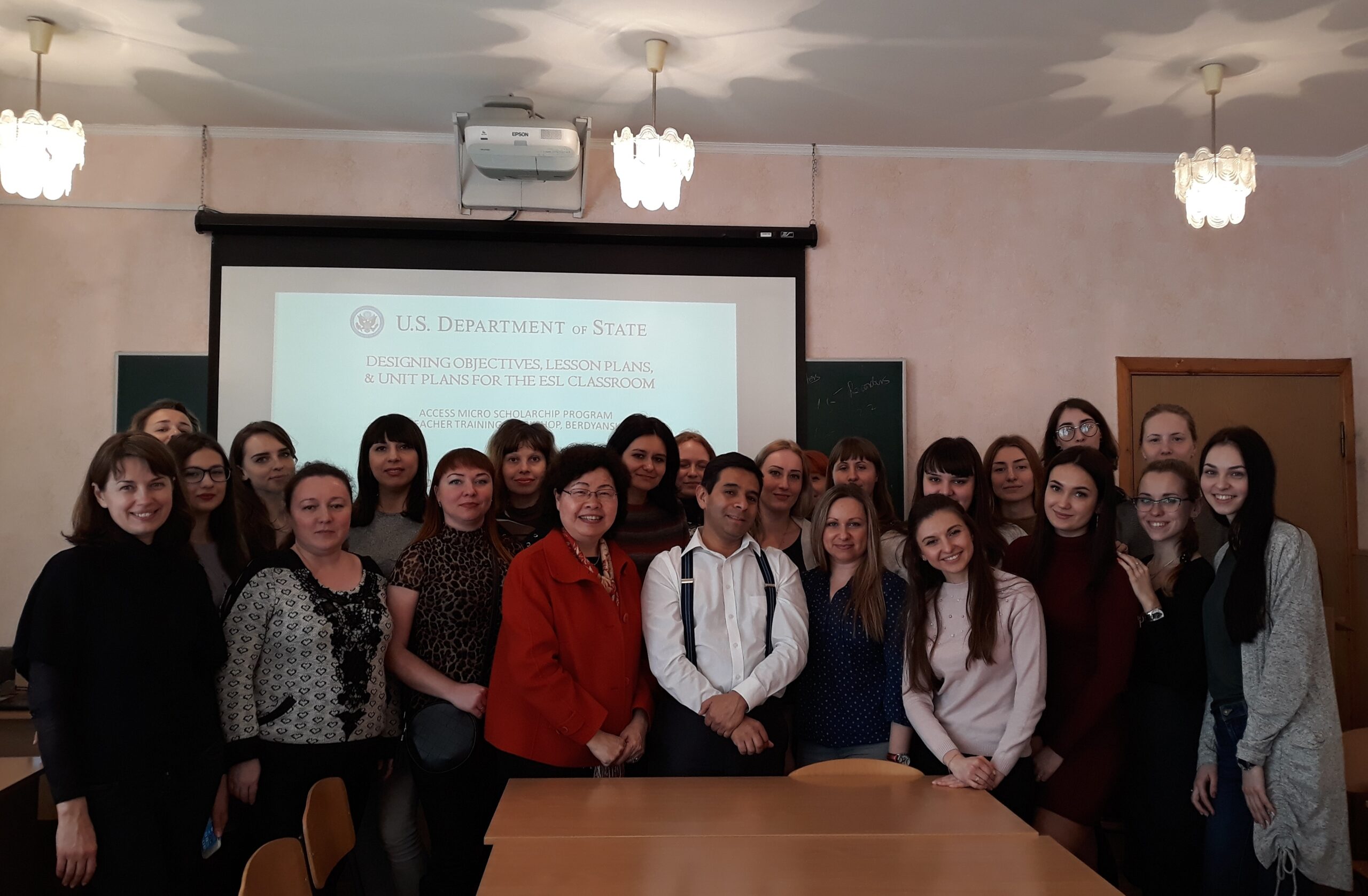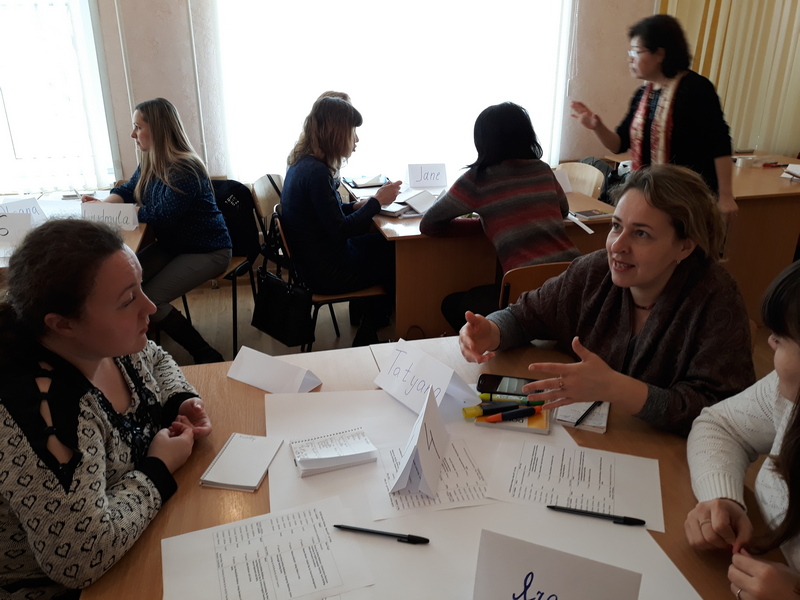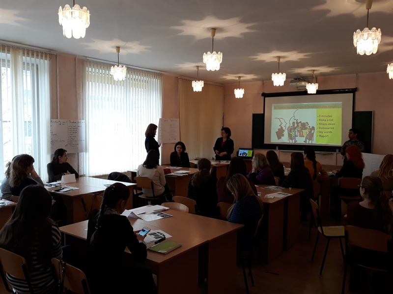 Тренери Luis Perea (English Language Fellow, Ukraine) і Grace Liu (English Language Fellow, Moldova), а також їхні українські колеги Оксана Холод і Оксана Колесник (Запоріжжя) та Лідія Айзікова (Миколаїв), представили насичену програму з методики викладання англійської мови.
