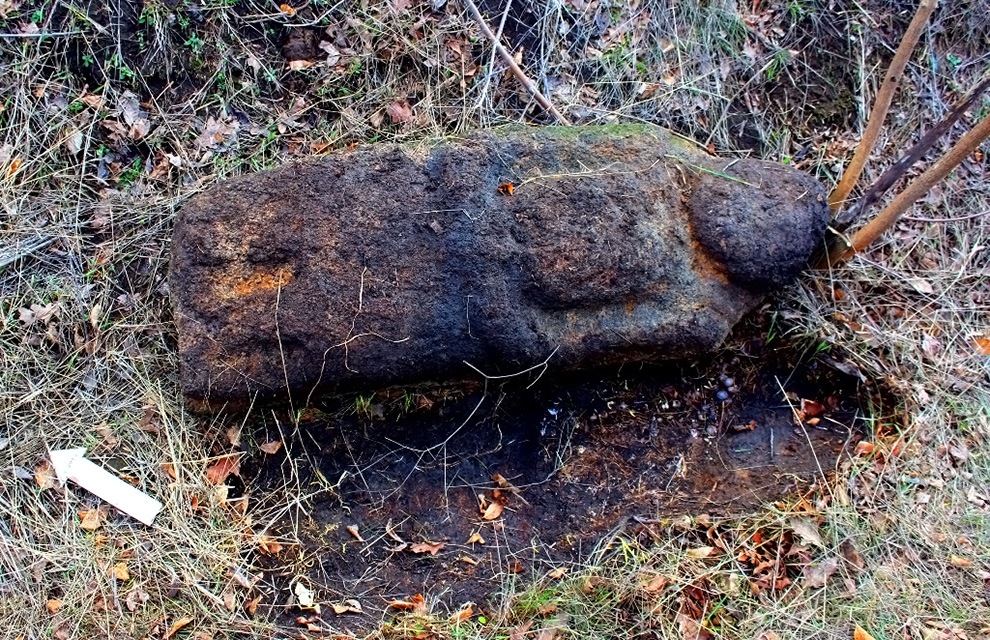 Прибувши на місце, перш за все, зафіксували та сфотографували знахідку. Перевернувши стелу ми побачили, що це половецька кам’яна баба. Знахідку завантажили до мікроавтобусу та відвезли до краєзнавчого музею. Вона була встановлена у лапідарії серед своїх «сородичів».