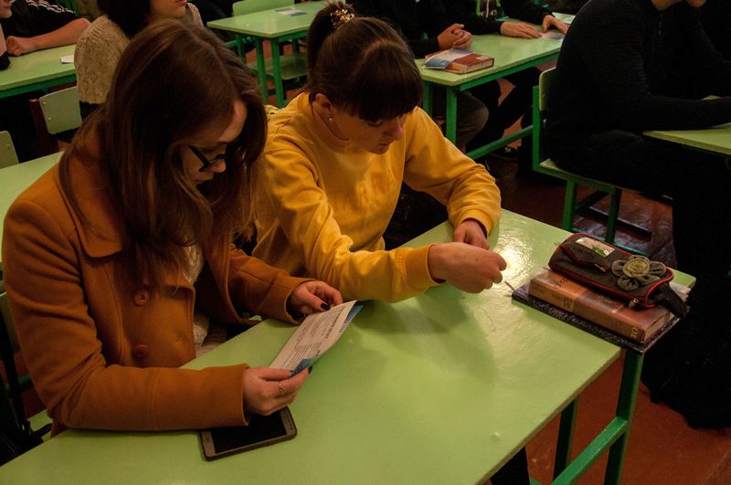 Проведено цікаві бесіди з учнями як одинадцятих, так і десятих класів, адже, на жаль, випускників 2018 року досить небагато. Крім того, делегація викладачів показала абітурієнтам цікавий фільм, знятий на ФФМКТО та яскраву презентацію ФФСК. Викладачі роздали буклети, проспекти та диски з матеріалами не лише учням, а й класним керівникам, директорам шкіл. Приємно, що директори багатьох шкіл Північного Приазов’я знають і шанують наш університет, а більшість із них є його випускниками, тому дехто з ностальгією говорив: «Передайте привіт рідним стінам університету…».