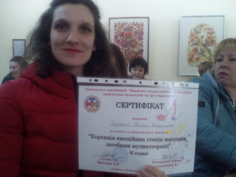 По закінченні тренінгу кожний учасник отримав Сертифікат, а завідувач підготовчого відділення БДПУ Людмила Костенко вручила слухачам Свідоцтва про закінчення курсів підвищення кваліфікації вчителя музичного мистецтва.