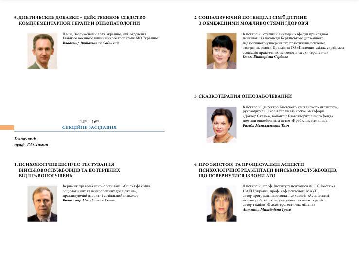 Обговорювали такі питання: психічна травма; біль; тривога; депресія; психосоматика; невиліковні хвороби, помирання та смерть; професійні психічні деформації; медико-психологічні аспекти реабілітації учасників АТО; когнітивні розлади; психоосвіта; психотерапія в кабінеті сімейного лікаря; духовно-наукова психологія і персоналізм.